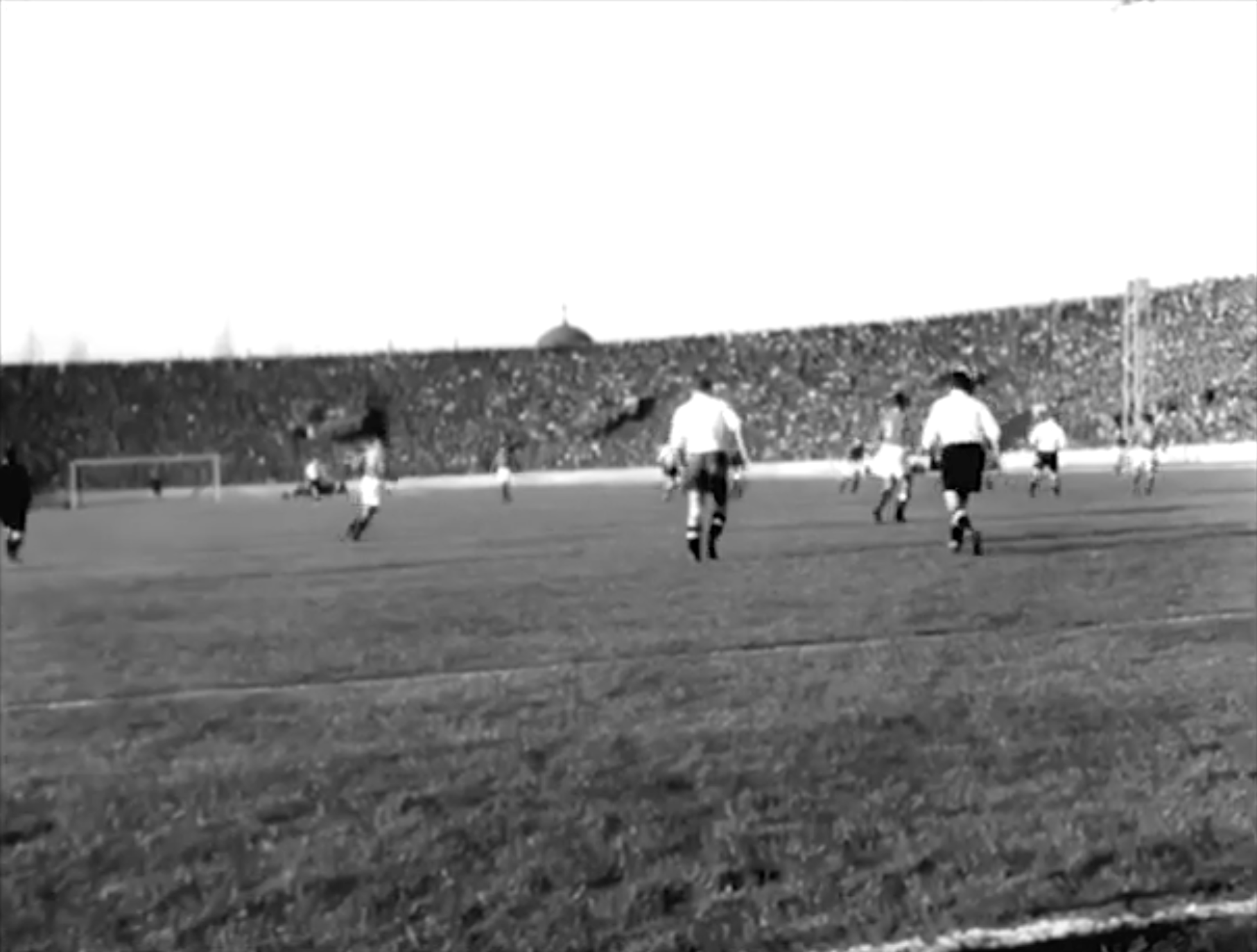 - Though never explicitly referenced, the blue-kitted ‘Dinamo’ team in Plavi 9 is a facsimile of Croatian club GNK Dinamo Zagreb – director Golik was born in Zagreb and was likely a fan. However, the stadium at which the match action was filmed appears to be Partizan Stadium in Belgrade (I believe you can see the Saint Archangel Gabriel Serbian Orthodox Church in the background of the shot below). Like Plavi 9, the stadium has socialist origins. It was built in part by the Yugoslav People’s Army between 1948 and 1951, and officially opened on Yugoslav People’s Army Day in December 1951 – though matches were played there before then; perhaps some of the Plavi 9 footage is from the stadium’s first ever game, a 1-1 draw between Yugoslavia and France in October 1949. Initially home to the Yugoslav national team and Belgrade club Metalac (which became BFK Beograd, now OFK Beograd), today Partizan Stadium hosts Serbian Super League side FK Partizan.