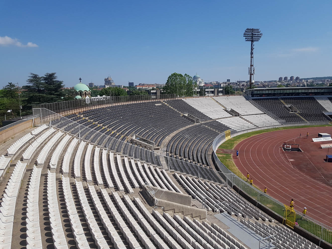 Notice the church poking out from the top of the stands at Partizan Stadium, above in Plavi 9 and below in a photo from 2022.